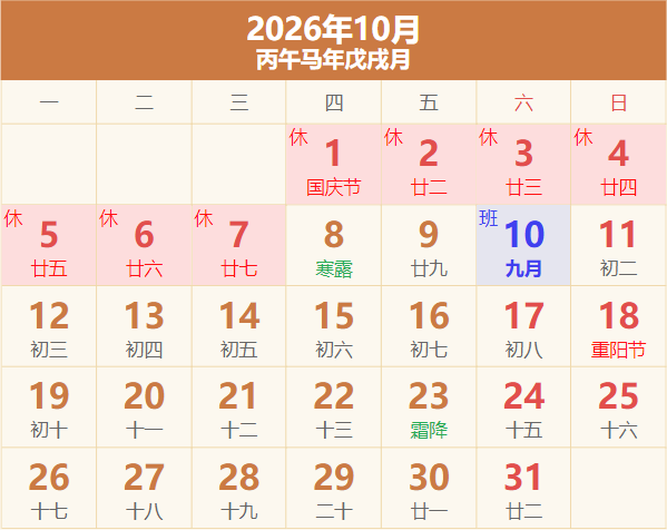 放假:10月1日 ~ 7日(周四 ~ 周三)