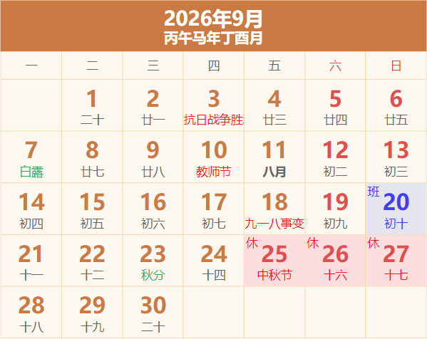放假:9月25日 ~ 27日(周五 ~ 周日),注:25日是中秋节