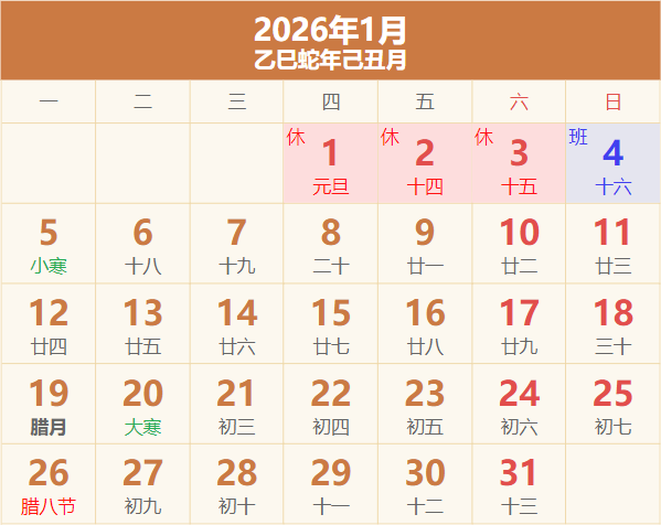 放假:1月1日 ~ 3日(周四 ~ 周六)