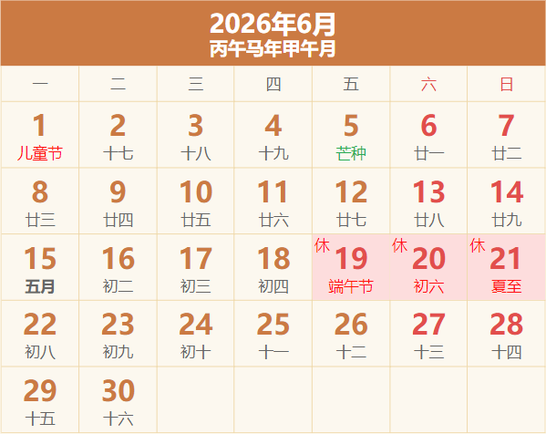 放假:6月19日 ~ 21日(周五 ~ 周日),注:19日是端午节,21日是父亲节