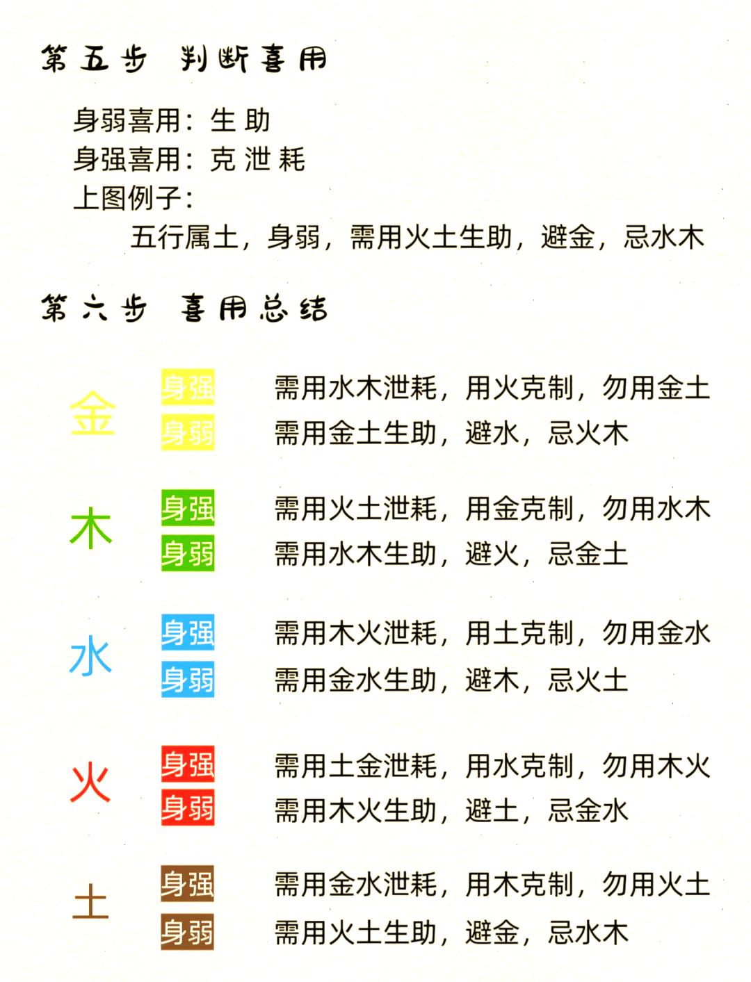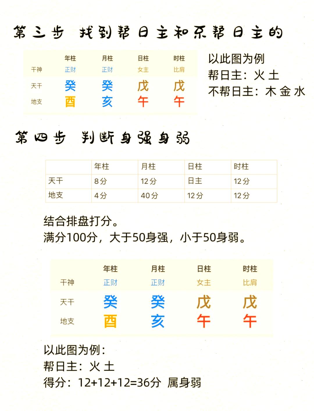 3️⃣ 找出帮助日主和不帮助日主的五行。